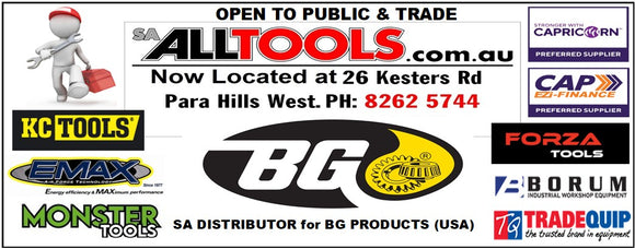 Trade Quality Automotive Tools, Workshop and Industrial Supplies. Official BG Products (USA) South Australian Distributor. INDEPENDANT, SA Family Owned we focus on Workshop Equipment, Mechanics Tools, Specialist Hand Tools, Lubrication Equipment, Welders, Compressors & Tool Storage. We have all of your Oil, Grease and BG Additives covered. We have an On-site TOOL REPAIR WORKSHOP, and our team have over 40 years of experience in the mechanical and tools supply industry, with extensive product knowledge to help you out. Earn Capricorn points here too!
